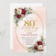 Convite Soft Burgundy Floral Gold 80th Birthday Invitation