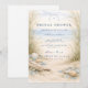 A refined coastal bridal shower design featuring an elegant oval wreath of seashells, oyster shells, starfish, and soft sea glass accents. Neutral sandy tones blend with muted ocean blues and delicate dune grasses to create a serene seaside aesthetic. The airy parchment background enhances the natural textures while maintaining a graceful, elevated look. Perfect for a beach-inspired celebration with timeless coastal charm.