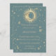 Convite Sol Celestial Dourado E Estrelas Luas Mint Verde