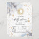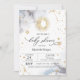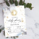 Sol e lua de ouro celestial e estrelas sobre fundo de aquarela. Esses convites para chuveiros de bebês são facilmente personalizados para seu evento simplesmente adicionando seus detalhes.