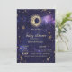 Convite Sol Celestial,Lua,Estrelas Céu Noturno Roxo