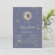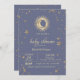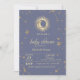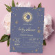 Sol e lua de ouro celestial e estrelas sobre fundo pastel de cor d'água. Esses convites para chuveiros de bebês são facilmente personalizados para seu evento simplesmente adicionando seus detalhes.