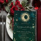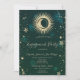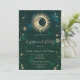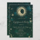 Sol e lua de ouro celestial, e estrelas sobre fundo verde. Belo convite que pode ser personalizado com seu nome. Selecione o botão "personalizar" para alterar o estilo, a cor e o tamanho da fonte.