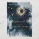 Sol e lua de ouro celestial, e estrelas sobre um fundo do céu noturno. Belo convite que pode ser personalizado com seu nome. Selecione o botão "personalizar" para alterar o estilo, a cor e o tamanho da fonte.
