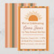 Celebre o primeiro grande marco do seu pequeno raio de sol com este encantador convite de aniversário Retro Sol! Desenhado numa paleta boho quente e terrosa, este convite apresenta um sol estilo vintage sorridente rodeado por raios divertidos e listras clássicas inspiradas nos anos 70. O layout minimalista e atraente destaca !—um modo perfeito de anunciar uma alegre celebração de 1º aniversário.