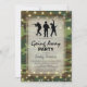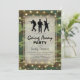 Convites personalizados de festa militar para celebrar um soldado que vai embora para o serviço nacional, ou para celebrar a sua chegada a casa. Com um fundo camuflado, uma peça central sobreposta vintage, tropas navais, luzes de corda e um modelo de festa moderno.
