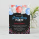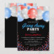 Convite de festa militar patriótica para celebrar um soldado que vai embora para o serviço nacional, ou para celebrar sua volta para casa. Com balões vermelhos, brancos e azuis, brilho de festa, luzes de corda e um modelo de festa moderno.