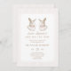 Soft and elegant baby shower invitation featuring two vintage bunnies with matching pink ribbon bows. This neutral minimal design is perfect for a twin girl baby shower, chic bunny-themed sprinkle, or timeless spring baby celebration.