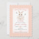 Celebrate your little girl's first milestone with this sweet "Some Bunny is Turning One" invitation! This design features a cute watercolor bunny, delicate cherry blossoms, and fluttering butterflies, all framed by a classic pink gingham (checked) pattern with a stylish scalloped edge.