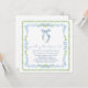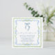 Chic and whimsical square bridal shower invitation with a vintage grandmillenial-inspired design featuring watercolor illustrations of a green scalloped and delicate blue floral frame and a blue coquette bow, "something blue before I do" showcased in a blue calligraphy script, and the name of the bride and shower details in classic serif typography.