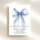 Charming bridal shower invitation featuring an elegant hand-painted watercolor of a blue coquette bow, "something blue before I do" in a chic script, and the bride's name and the event details in simple modern lettering.
