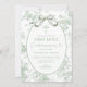 Something Sage Green Vintage Floral Toile First Holy Communion Christening Cross Invitation