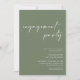 Um convite mínimo moderno para festas de noivado com fundo verde sábio e fonte moderna de script.