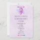 Um convite de aniversário elegante e mágico. Um design temático nativo americano criado com aquarelas. Um atrapasueños rosa com um aro entrelaçado e penas delicadas penduradas. Colocado sobre um borrão de tinta aquarela roxa com um fundo roxo claro. 2 flechas coloridas decoram a parte superior e inferior.