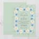Este design apresenta um fundo suave em verde limão decorado com um arranjo de delicadas flores em aquarela. A obra de arte inclui papoulas em azul pálido e creme acentuadas por folhagens suaves em verde. Ela evoca uma atmosfera romântica e serena perfeita para um evento nupcial de primavera. A paleta pastel cria uma estética fresca e arejada.