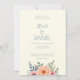 Vamos dá vida à sua história de amor com o nosso convite de "Peach and Petal Dream". Este design apresenta uma mistura suave de florais de cor-de-rosa suave e cor-de-água pêssego, criando um sentimento romântico e elegante. As flores delicadas estão organizadas graciosamente no fundo do cartão, perfeito para um casamento de jardim ou primavera. Trabalharemos com você para personalizar o texto e o layout, assegurando que cada detalhe seja exatamente como você previu.