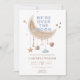 Este convite para o chá de fraldas "Dreamy Over the Moon" apresenta um tema celestial certeiro, com a frase "WE'RE OVER THE MOON" no topo. A design mostra uma lua crescente com elementos pendurados charmosos como uma estrela, coração, nuvem e arco-íris, criando um efeito móvel suave. As cores gentis e neutras o tornam ideal para uma celebração neutra em termos de gênero, combinando elegância e brincadeira para um evento memorável.