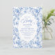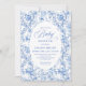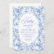 Create a timeless first impression with this baby shower invitation featuring elegant French toile de jouy roses in refined shades of navy blue, royal blue, dusty blue, and deep blue, inspired by classic chinoiserie floral design. This sophisticated style blends heritage elegance with modern charm, making it perfect for a memorable baby shower celebration.