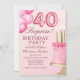 Celebrate in style with this elegant adult 40th birthday invitation featuring a beautiful pink cake and fun pink balloon numbers. Perfect for an elegant and memorable celebration, this design adds a touch of fun and sophistication to your special day. Ideal for women looking to celebrate a milestone birthday in style!