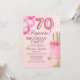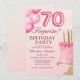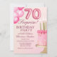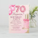 Celebrate in style with this elegant adult 70th birthday invitation featuring a beautiful pink cake and fun pink balloon numbers. Perfect for an elegant and memorable celebration, this design adds a touch of fun and sophistication to your special day. Ideal for women looking to celebrate a milestone birthday in style!