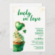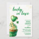 Boa sorte no convite para o tema do chá de panela do amor! Possui um cupcake com aspersores de shamrock e muito brilho. Bonito coração verde picado no cupcake por amor extra. O fundo tem uma espuma de ouro espalhada. A tipografia bonito aumenta a aparência. Que design maravilhosa para o seu chá de panela. Veja a coordenação de itens no nosso compro, Encantado Finch.