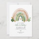 Sortudo! Convite de 1º Aniversário do Dia de São Patrício com arco-íris cor-de-rosa e verde fofo, trevos e detalhes em dourado.