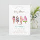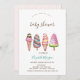 Os convites apresentam sorvetes com listras de aquarela pastel.