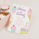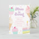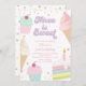 Três é doce! Sorvete, aspersores e convite para aniversário de 3 anos de bolo.