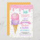 Bonito convite de aniversário em estilo. Tema: Sorvete - 2 Colheres de Diversão. Ocasião: Festa de aniversário Gêmeas Irmãos Raparigas. Estilo: Bonito, Cheio, Divertido, Elegante. Cores: Rosa, Azul, Roxo, Arco-íris confetti. Gráficos: Sorvete, aspersão de Pastel, gota a gota de açúcar.