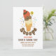Personalize 3 Scoops no convite de aniversário para a menina ou o garoto fazer três anos. Sorvete de convite para festa de aniversário de 3 anos de menina ou garoto. Cores neutrais para a festa de aniversário de 3 anos de menino ou de menina. gráfico de cone abstrato no verso.