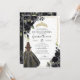Convite Sotaque Dourado Floral Preto Elegante Quinceanera