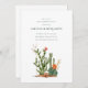 A modern engagement party invitation featuring hand-painted watercolor cacti and desert blooms in soft green and coral tones. The minimalist layout and elegant typography create a clean, sophisticated look—perfect for southwest, boho, or outdoor celebrations. Ideal for couples who love natural, modern design with a warm desert touch.