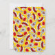 Design de Whimsical desenhado em estilo retrô, com lembranças de um feriado espanhol; uma guitarra de ferro em formas brutas, um fã de legado e uma rosa vermelha. Um design personalizável em preto, branco, vermelho e ouro amarelo para você personalizar com seu próprio texto, imagens e ideias. Uma imagem de arte digital original.