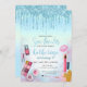 Super glam Blue Spa convite de aniversário para uma garota que celebrará seu dia especial no spa ou no salão com seus amigos para ser mimada e celebrar. Belo Convite de aniversário com brilho azul pingando, esmalte de unhas e maquiagem.