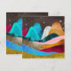 A vibrant, textured digital illustration featuring rounded fantasy mountains set against a dark sky full of golden stars. The style is modern and abstract, with a heavy emphasis on color contrast and layered textures.
