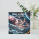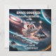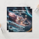 Convite para um casamento no espaço entre planetas e estrelas, com a noiva e o noivo a bordo de uma nave espacial.