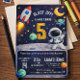 Perfect for space birthday parties, astronaut themes, galaxy celebrations, and outer space adventures, this invitation pairs seamlessly with matching decorations, games, and party supplies.