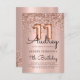 Celebre em estilo com este elegante Convite de Aniversário do 11 de Balão Glitter Dourado de Rosa. Apresentando caligrafia com letra chic e balão de número de folha de ouro rosa, este design é melhorado por uma borda brilhante e uma película metálica cor-de-rosa luxuosa e roscada. Perfeito para a festa de uma menina de 11 anos, ele captura a diversão e o glamour de uma moderna celebração de aniversário com brilho de ouro rosa.