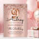 Celebre em estilo com este elegante Rosa, Dourado, Balão de Brilho 9º Aniversário. Apresentando caligrafia com letra chic e balão de número de folha de ouro rosa, este design é melhorado por uma borda brilhante e uma película metálica cor-de-rosa luxuosa e roscada. Perfeito para a festa de uma menina de 9 anos, ele captura a diversão e o glamour de uma moderna celebração de aniversário com brilho de ouro rosa.