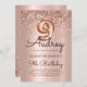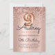 Convite Sparkle Glitter Rosa Dourado Balão 9º Aniversário