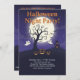 Invite guests to a haunting night with this simple yet atmospheric Halloween Night Party invitation! The design features a spooky, stylized landscape with a giant full moon, silhouetted haunted house, bare tree, and jack-o'-lanterns. Perfect for a classic, all-ages Halloween gathering or a fun night event. The design is centralized, making it clear and easy to read.