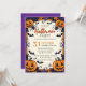 Tenha um bom momento com este vibrante convite de Halloween. A design apresenta pinceladas-as-lanternas, aranhas ameaçadoras, e morcegos sombrios contra um rico fundo roxo e laranja nojento. Personalize todos os detalhes — desde a data da festa até o RSVP — para criar um convite exclusivo que é seu. É a maneira perfeita de convocar seus convidados para uma noite de terror.