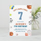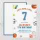 Celebrate an action-packed birthday with this fun sports-themed 7th birthday invitation featuring the playful phrase “Let’s Have a Ball.” Designed with a bold number 7 and a mix of popular sports balls—including soccer, basketball, baseball, football, tennis, and more—this invitation is perfect for an all-sports birthday celebration.