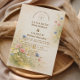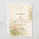 A romantic meadow of soft watercolor blooms rises from the base of this elegant design, featuring blush cosmos, delicate daisies, buttery yellow florals, and airy blue wildflowers. The warm parchment background and refined gold typography create a timeless, sunlit aesthetic that feels both rustic and sophisticated. Light, airy, and beautifully balanced, this design captures the charm of a countryside celebration with classic polish. Perfect for couples who love garden romance with a refined finish.