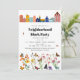 A hand drawn illustration of neighborhood block city houses. A modern abstract pattern featuring homes, buildings and architecture. An ideal design for anyone who loves the city, buildings, architecture, neighborhood house art. This neighborhood themed design is ideal for neighborhood block parties, real estate agents and modern home decor.