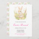 Pretty easter brunch invitation invitation with an adorable rabbit and pink and yellow flowers. The words can be changed to suit your own details or requirements
