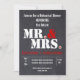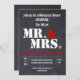 O Sr. e a Sra. Modern, tipografia, jantam o convite para o ensaio de casamento do quadro vermelho-preto, com os títulos de cortesia do Sr. e da Sra. em branco, a ampersa em vermelho e o período em branco, com um coração vermelho. Este modelo de casamento moderno e contemporâneo, elegante, com um talento vintage. É divertido e moderno e faz parte de uma coleção de casamentos ou é perfeitamente personalizável perfeito para um casamento no inverno rústico.