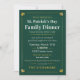 Gather your loved ones for a cozy and meaningful celebration with this "St. Patrick’s Day Family Dinner" design. Perfectly suited for those hosting a night of traditional Irish fare, this design features a deep hunter-green background with a subtle cross-hatch texture and elegant gold-foil-style borders. The corner shamrock accents and classic serif typography create a refined yet welcoming aesthetic for guests. Whether you are serving corned beef and cabbage or a hearty stew, this layout allows you to easily customize the time, location, and RSVP details. The back features a minimalist gold shamrock and matching border, ensuring a professional and polished finish for your holiday invitations.