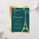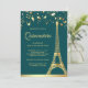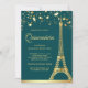 Convite Star Confetti Dourada Eiffel Tower Teal Quinceaner
