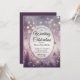 Convide seus entes queridos para comemorar seu dia especial com este convite encantador de casamento, apresentando um maravilhoso jardim do crepúsculo banhado em matizes de lavanda macia e brilhantes luzes de fada. Flores silvestres deliciadas, borboletas caprichosas, e detalhes de bokeh brilhantes criam uma atmosfera etérea romântica que se sente hetero de um conto de fadas. Perfeito para os casais que querem que a sua papelaria de casamento reflita um sentimento de maravilha, romance e elegância eterno, esta design estabelece a palco de uma celebração mágica sob as estrelas.